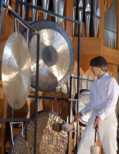 Neben ihrer profan-explosiven Signalfähigkeit ermöglichen Gongs auch "langsam"-nyancierte Klangbewegungen. Prozesshafte Wandlung von Farben, gefühlten Kängen, Kräften und Geschwindigkeiten: diesen folgt eindrücklich der Gongmusiker Tschongor Kölze in seinen Klanggemälden.